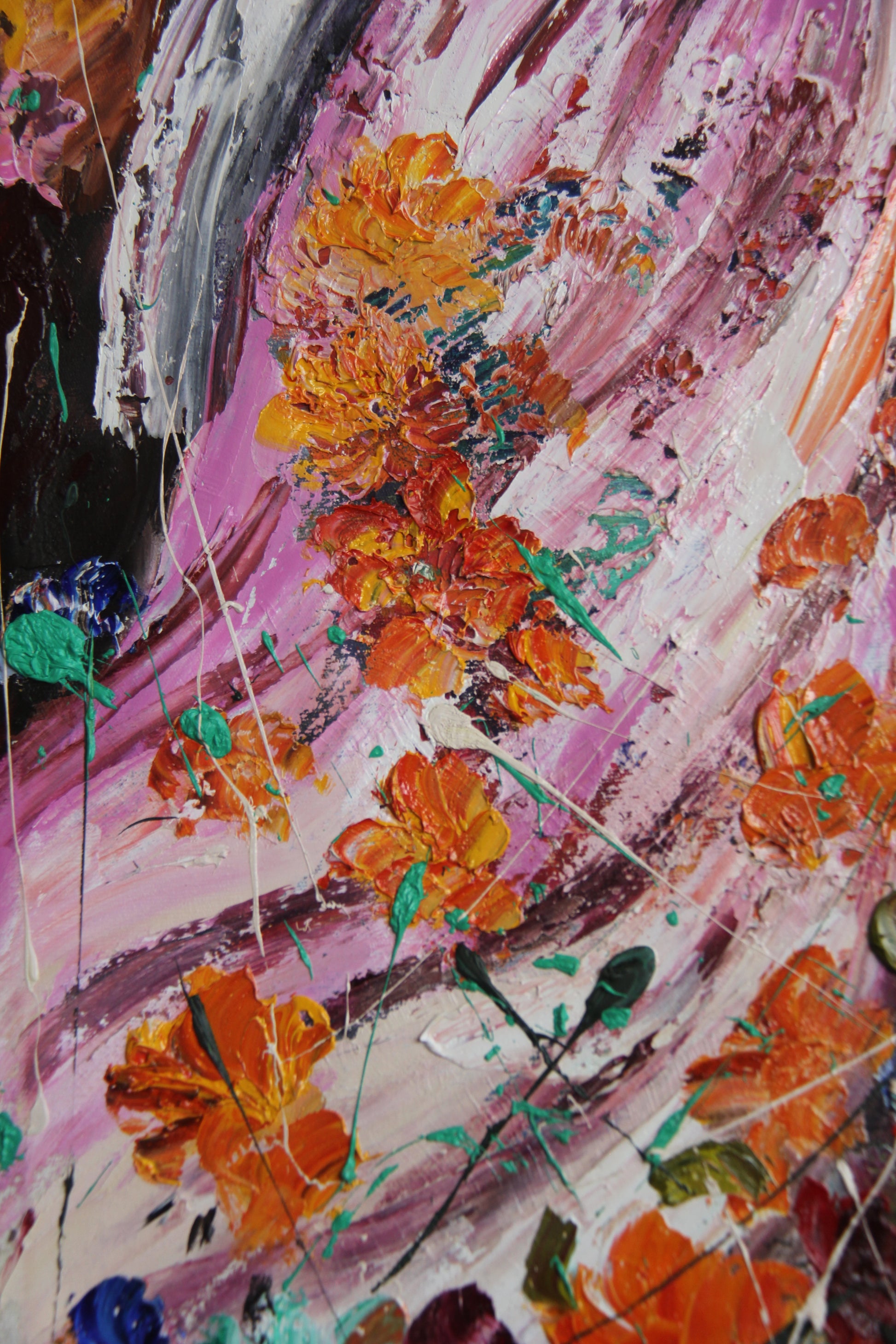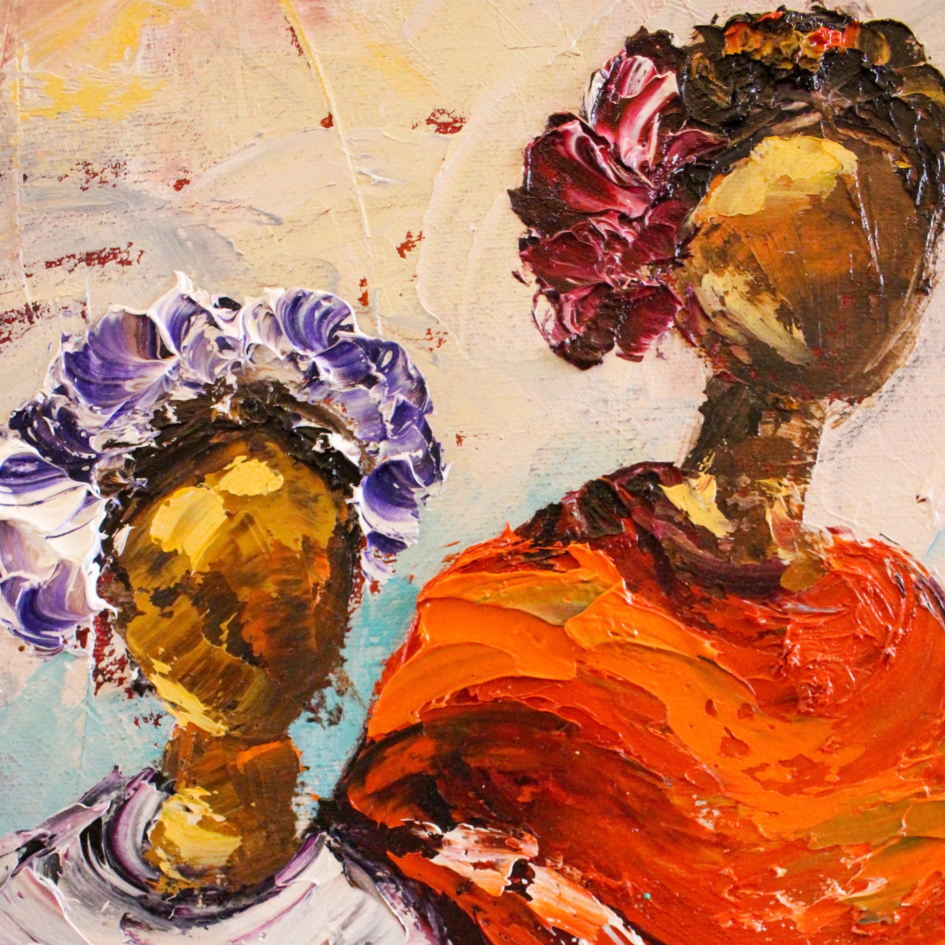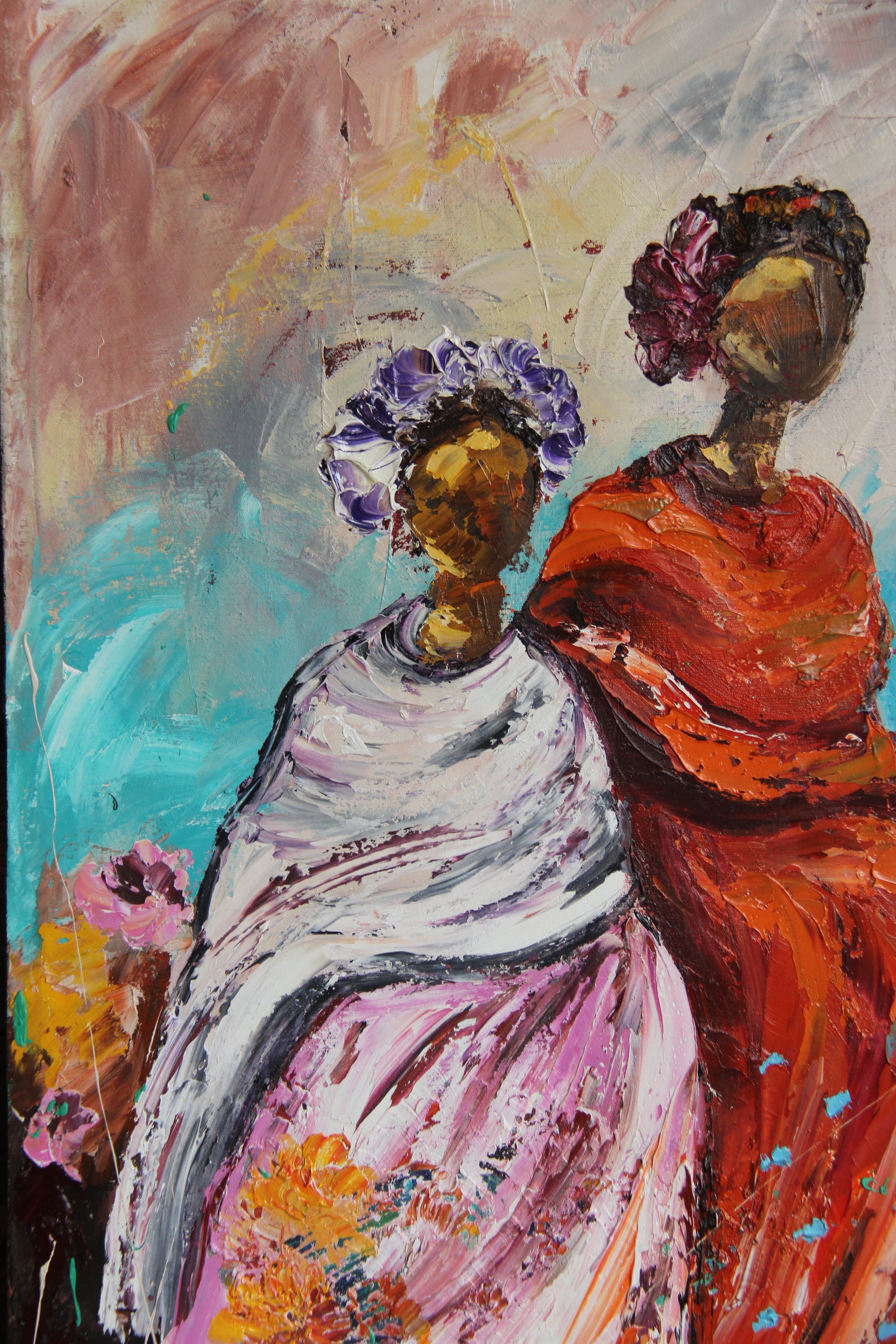 The inspiration for this work comes from the flowers , and their scent, found in the gardens of the Isthmus of Tehuantepec. Two women take a stroll and converse, admiring their surroundings.